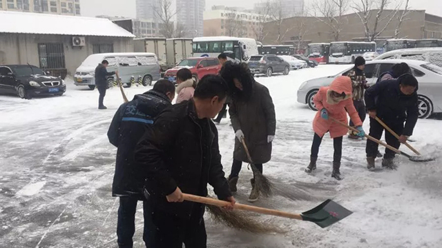 2019年2月15日、19日沈城兩次降雪,每一次的雨雪天氣的來襲,都是對全體一線公交人都是嚴峻的考驗。面對惡劣天氣,各單位多項舉措在雨雪中連夜奮戰(zhàn),干部職工上下一心,紛紛提前到崗,清理場區(qū)、站區(qū)、車輛積雪,做好出車前的各項例行檢查,全力保障市民安全出行。大家不畏嚴寒、齊心協(xié)力、配合默契,忙碌的身影在雪天里形成了一道最亮麗的風景線。