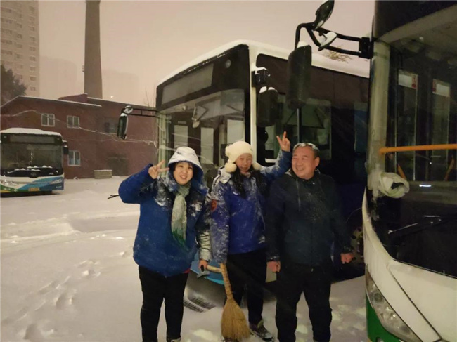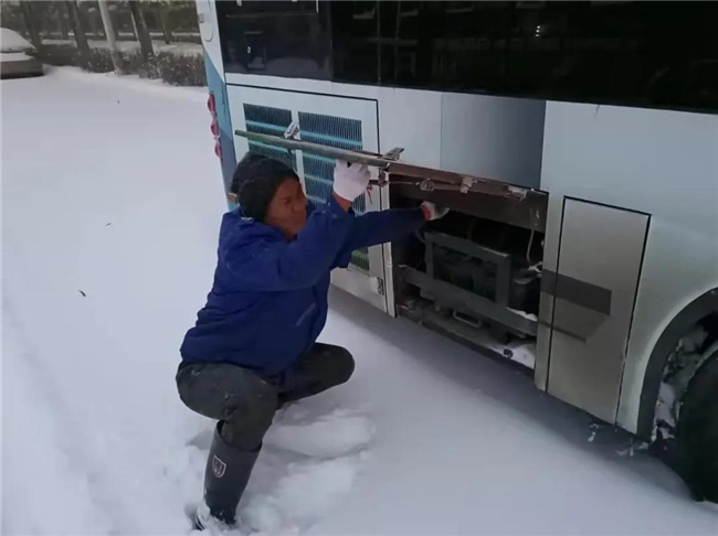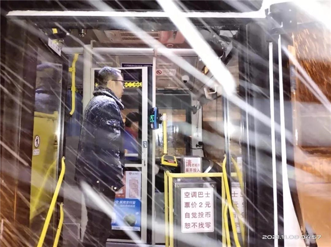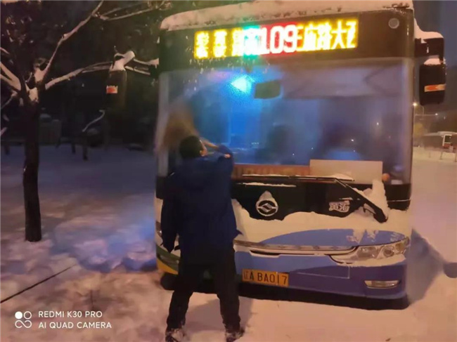 凌晨4點多,第一班車的駕駛員就已經(jīng)提前到崗,清掃積雪,預熱車輛...