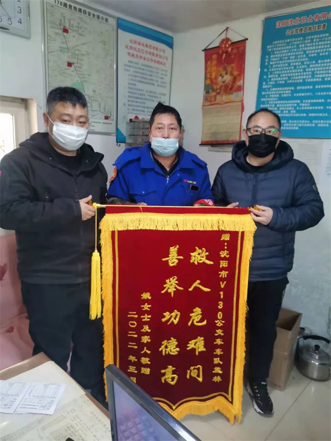 幾天后,乘客的家屬為表感謝帶著一面“救人危難間 善舉功德高”的錦旗來到了178車隊。盡管乘客的生命沒有搶救過來,但家屬聽說了駕駛員孟林爭分奪秒搶救過程,非常感動,于是制作了錦旗并親手交到了孟林的手中,衷心感謝孟師傅臨危不亂、救死扶傷,為乘客生命的最后一刻留下了絲絲溫暖。