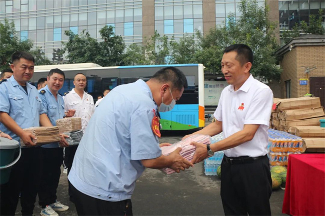 黨委書記、董事長孟令軍代表集團領(lǐng)導班子向所有在高溫下奮戰(zhàn)和堅守的客運一線職工表示感謝,并囑咐大家在為廣大市民提供服務的同時,要做好自身防暑降溫,合理安排好調(diào)休時間,保證身體健康。要求各單位黨政工團組織切實將關(guān)心關(guān)愛職工落到實處,擴大活動的覆蓋面,確保一線職工的身心健康,全力保障市民平安出行。