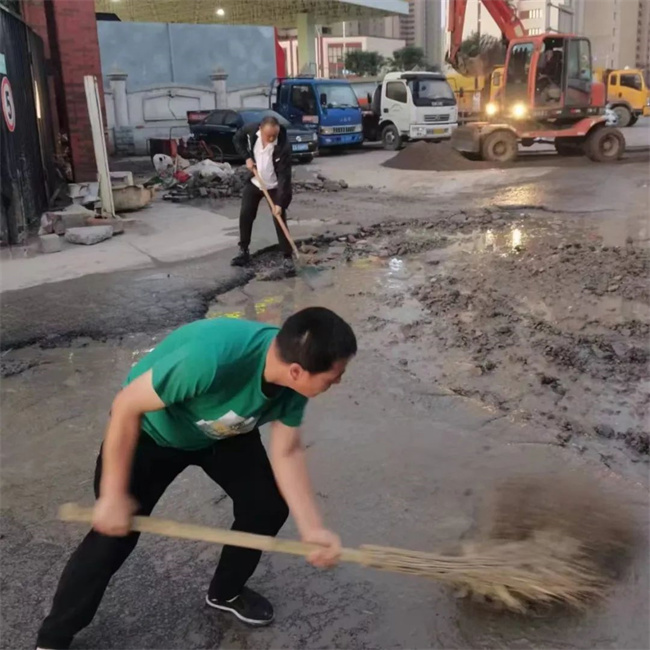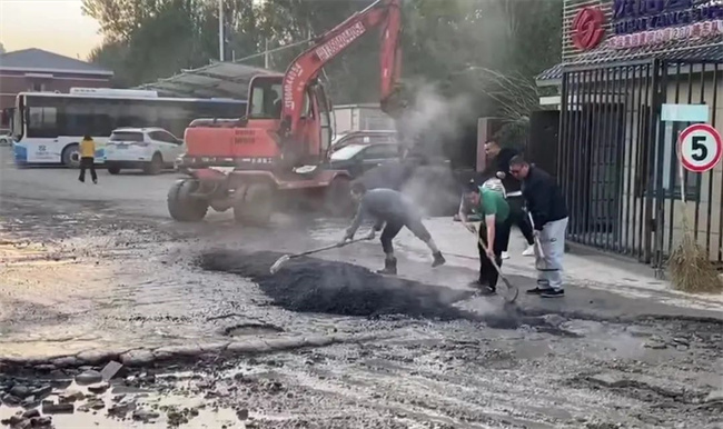 為盡快解決路面問題,消除安全隱患,黃河公司在資金極度緊缺的情況下,本著辦法總比困難多的積極態(tài)度,通過聯(lián)系市政施工隊(duì)以進(jìn)場的方式來修復(fù)破損路面。
