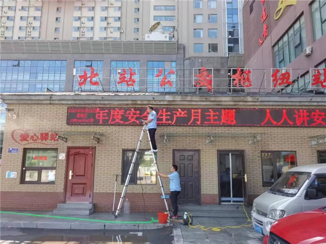烈日當(dāng)頭,干勁十足,大家認(rèn)真對(duì)樞紐站的候車長椅、站牌燈箱、小廣告、出入欄桿、愛心驛站、綠化帶、垃圾桶的環(huán)境衛(wèi)生等進(jìn)行全方位清理,確保環(huán)境衛(wèi)生干凈整潔,不留死角。