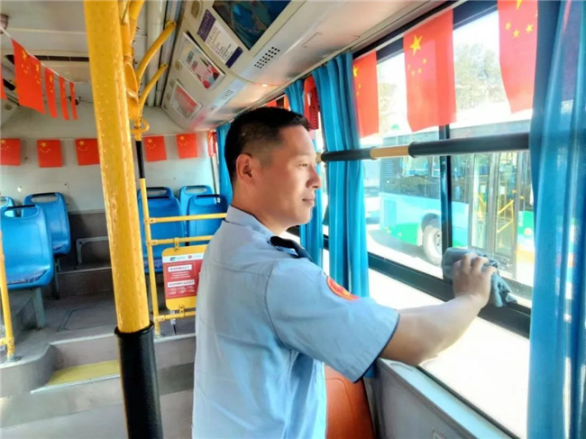 沈蘇、鑫暢公司所屬車(chē)隊(duì)精心打造“歡度國(guó)慶”主題車(chē)廂,在公交車(chē)廂內(nèi)掛滿了五星紅旗和紅色貼紙,讓乘客一踏入車(chē)廂便感受到濃厚、喜慶的節(jié)日氛圍。