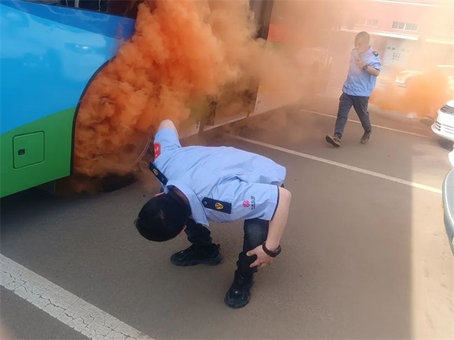 在現(xiàn)場(chǎng)演練環(huán)節(jié),黃河公司相關(guān)負(fù)責(zé)人現(xiàn)場(chǎng)講解并模擬在公交車輛突發(fā)火災(zāi)事故中,駕駛員如何采取應(yīng)急措施,疏散乘客到安全位置;如何正確使用滅火器進(jìn)行滅火,最大限度保障人民生命財(cái)產(chǎn)安全;遇到乘客攜帶不明液體乘車時(shí),駕駛員如何正確安檢示范;車廂內(nèi)乘客與乘客之間發(fā)生沖突時(shí),駕駛員的正確處置方法等。