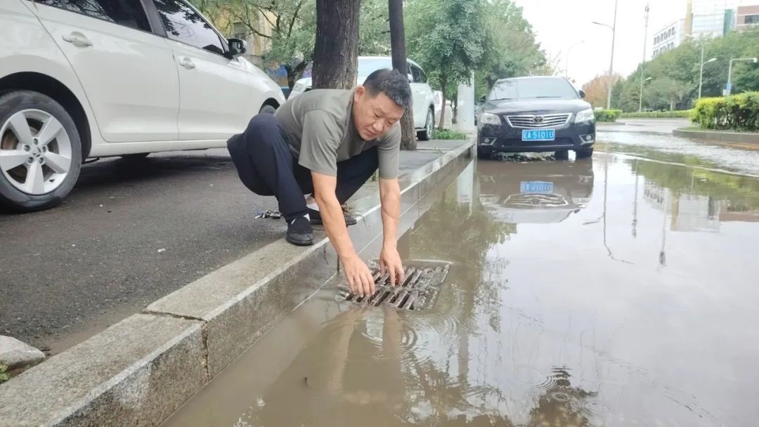 下了幾乎一夜的雨將254路車隊(duì)門前道路幾乎淹沒(méi),254路車隊(duì)長(zhǎng)劉佳寧拿起鐵鍬等工具,對(duì)下水道附近的污垢進(jìn)行清理,排除積水。