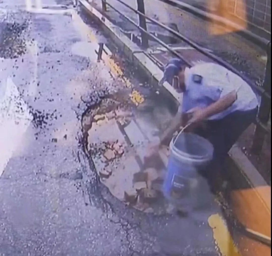 經(jīng)過(guò)雨水的沖刷,7月26日一大早,沈陽(yáng)市第五中學(xué)附近路面上出現(xiàn)了一處大坑,為了保障公交車安全運(yùn)營(yíng),也為了其他過(guò)往車輛的安全行駛,211路車隊(duì)委托10多名線路駕駛員每趟車次捎帶部分土石磚塊鋪在坑洼處,暫時(shí)緩解了這里的險(xiǎn)情。