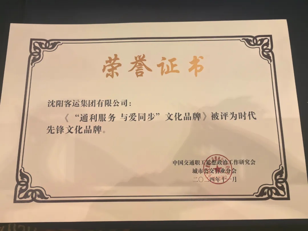 沈陽客運集團《“通利服務(wù) 與愛同步”文化品牌》被評委時代先鋒文化品牌。