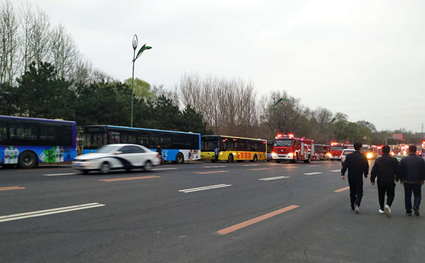 按照市交通局指令,沈陽(yáng)客運(yùn)集團(tuán)有限公司迅速啟動(dòng)應(yīng)急響應(yīng),成立棋盤(pán)山大火救援疏散臨時(shí)指揮部,以最短時(shí)間集結(jié)公交車(chē)輛82輛(不含棋盤(pán)山公交線(xiàn)路的168路)做為疏散預(yù)備車(chē),其中鑫暢公司7輛、通利公司27輛、天益公司48輛。期間,疏散市民合計(jì)出車(chē)13輛次,疏散居民378人,其中5輛車(chē)由靜安康復(fù)中心向馬耳山分院運(yùn)送160余人;1輛車(chē)由上木村向英達(dá)小學(xué)運(yùn)送23人;1輛車(chē)由泗水村向英達(dá)中學(xué)運(yùn)送25人;1輛車(chē)由何氏醫(yī)學(xué)院向龍之夢(mèng)地鐵站運(yùn)送40人;5輛車(chē)由劉家屯養(yǎng)老中心向沈河區(qū)、大東區(qū)、皇姑區(qū)、渾南區(qū)養(yǎng)老中心運(yùn)送130人。